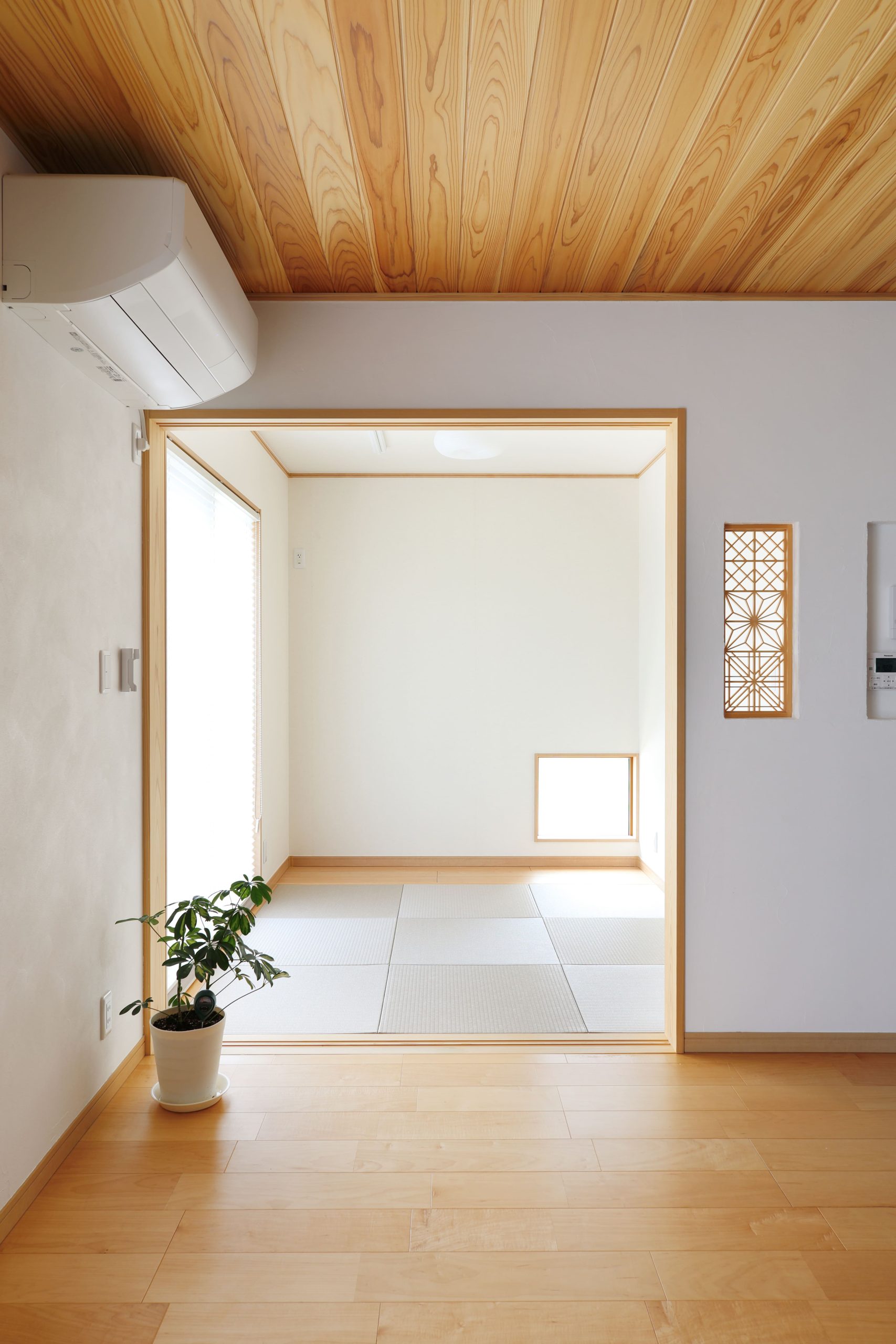 リビングの延長感覚で使える和室。吊り下げ式の物干し竿も設置し、アレルギーがあっても心配がいらない。